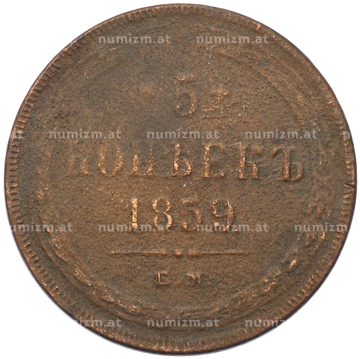 Купить 5 копеек 1859 года ЕМ по привлекательной цене можно в нашем интернет-магазине — Вам достаточно оформить заказ на сайте. Все монеты, представленные в каталоге, находятся в наличии на нашем складе.