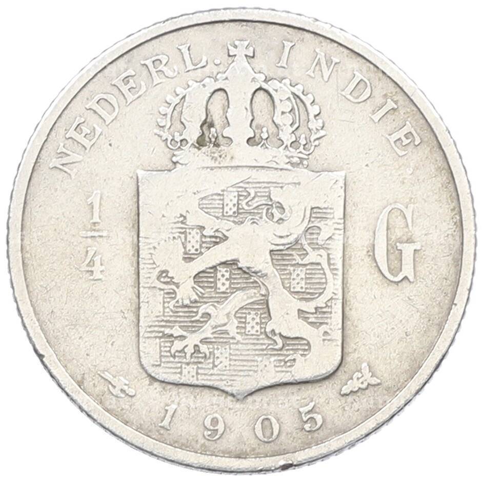 Купить 1/4 гульдена 1905 года Голландская Ост-Индия по привлекательной цене можно в нашем интернет-магазине — Вам достаточно оформить заказ на сайте. Все монеты, представленные в каталоге, находятся в наличии на нашем складе.