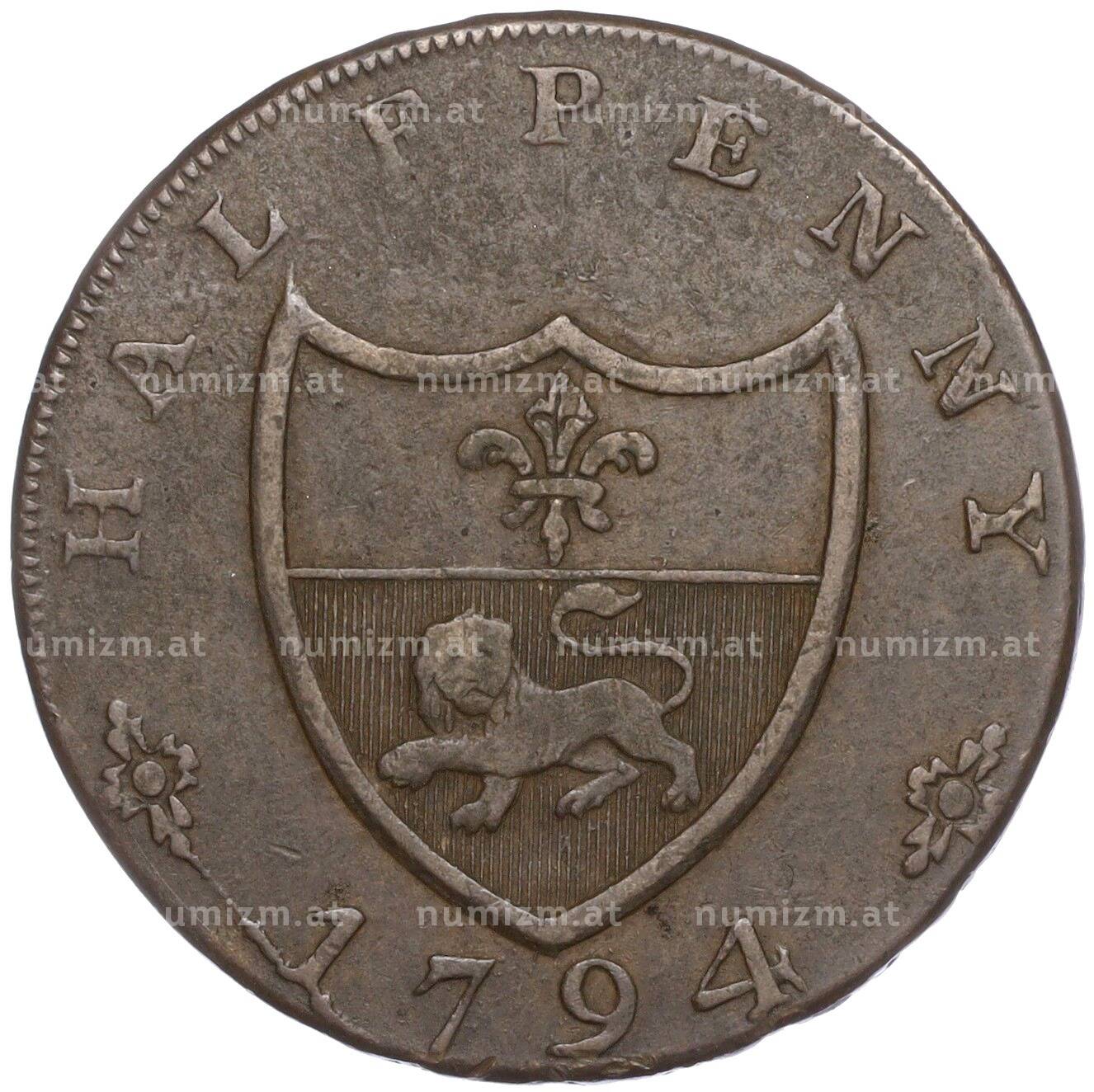Купить Токен 1/2 пенни 1794 года Великобритания (Ланкастер — Джон Гонт) по привлекательной цене можно в нашем интернет-магазине — Вам достаточно оформить заказ на сайте. Все монеты, представленные в каталоге, находятся в наличии на нашем складе.