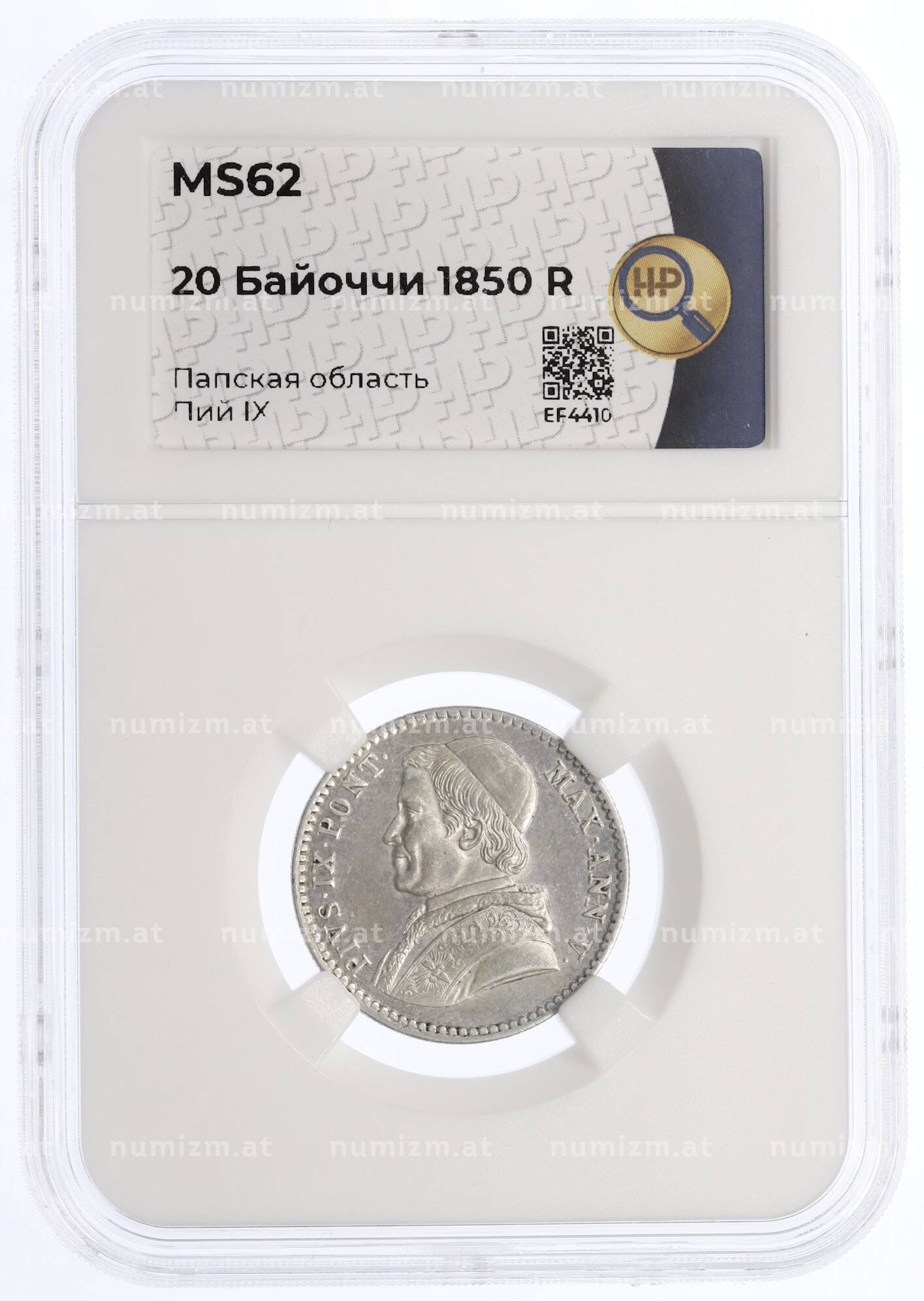 Купить 20 байоччи 1850 года R Папская область — в слабе ННР (MS62) по привлекательной цене можно в нашем интернет-магазине — Вам достаточно оформить заказ на сайте. Все монеты, представленные в каталоге, находятся в наличии на нашем складе.