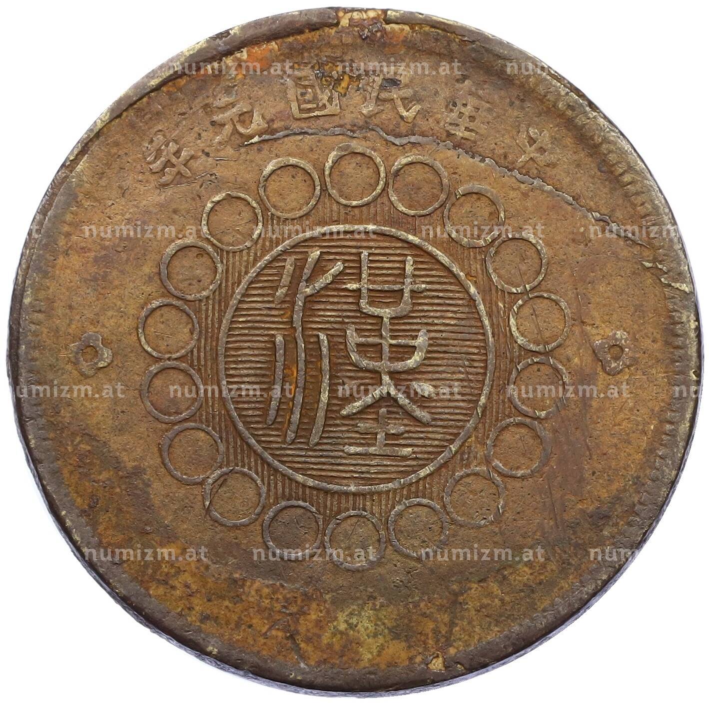 20.01.2025Интернет магазин «Нумизмат» предлагает приобрести 50 кэш 1912 года Китай — провинция Сычуань.