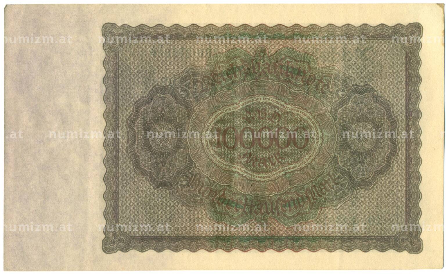 Банкнота 100000 марок 1923 года Германия (Артикул: K4-0366): подробные характеристики, качественные фотографии в высоком разрешении, низкая цена.