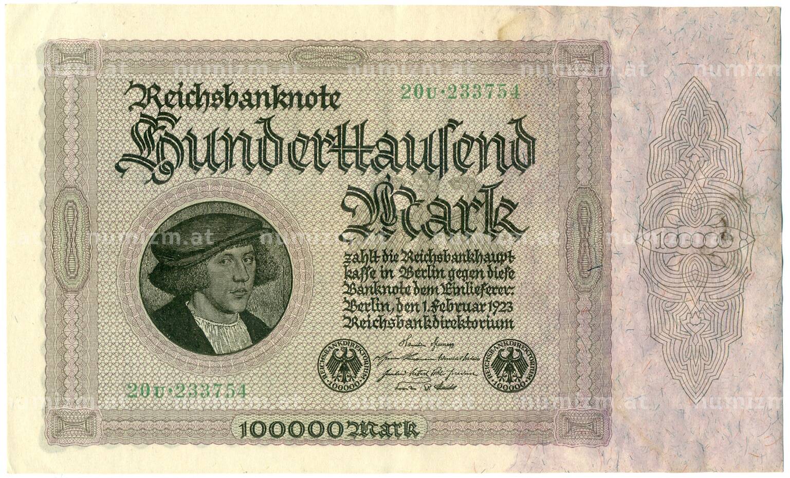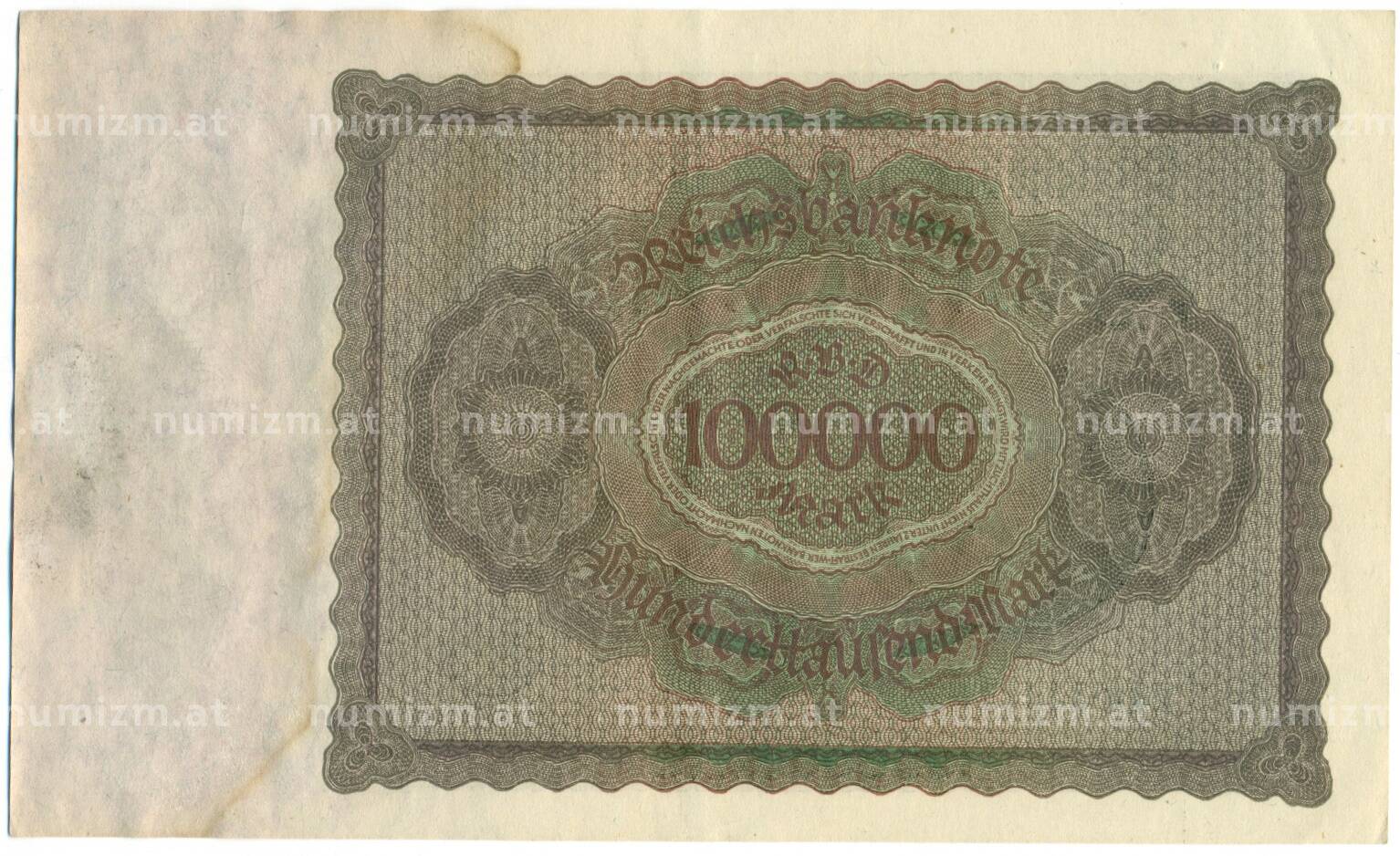 Банкнота 100000 марок 1923 года Германия (Артикул: K4-0377): подробные характеристики, качественные фотографии в высоком разрешении, низкая цена.