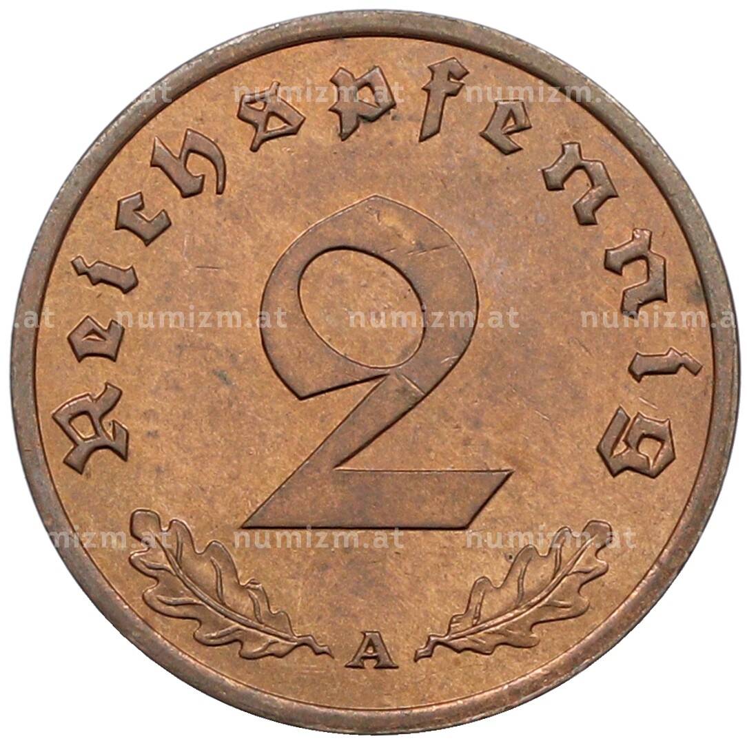 Монета 2 рейхспфеннига 1940 года A Германия (Артикул: K4-0701): подробные характеристики, качественные фотографии в высоком разрешении, низкая цена.