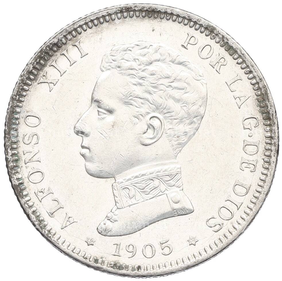 Монета 2 песеты 1905 года Испания (Артикул: K4-0747): подробные характеристики, качественные фотографии в высоком разрешении, низкая цена.