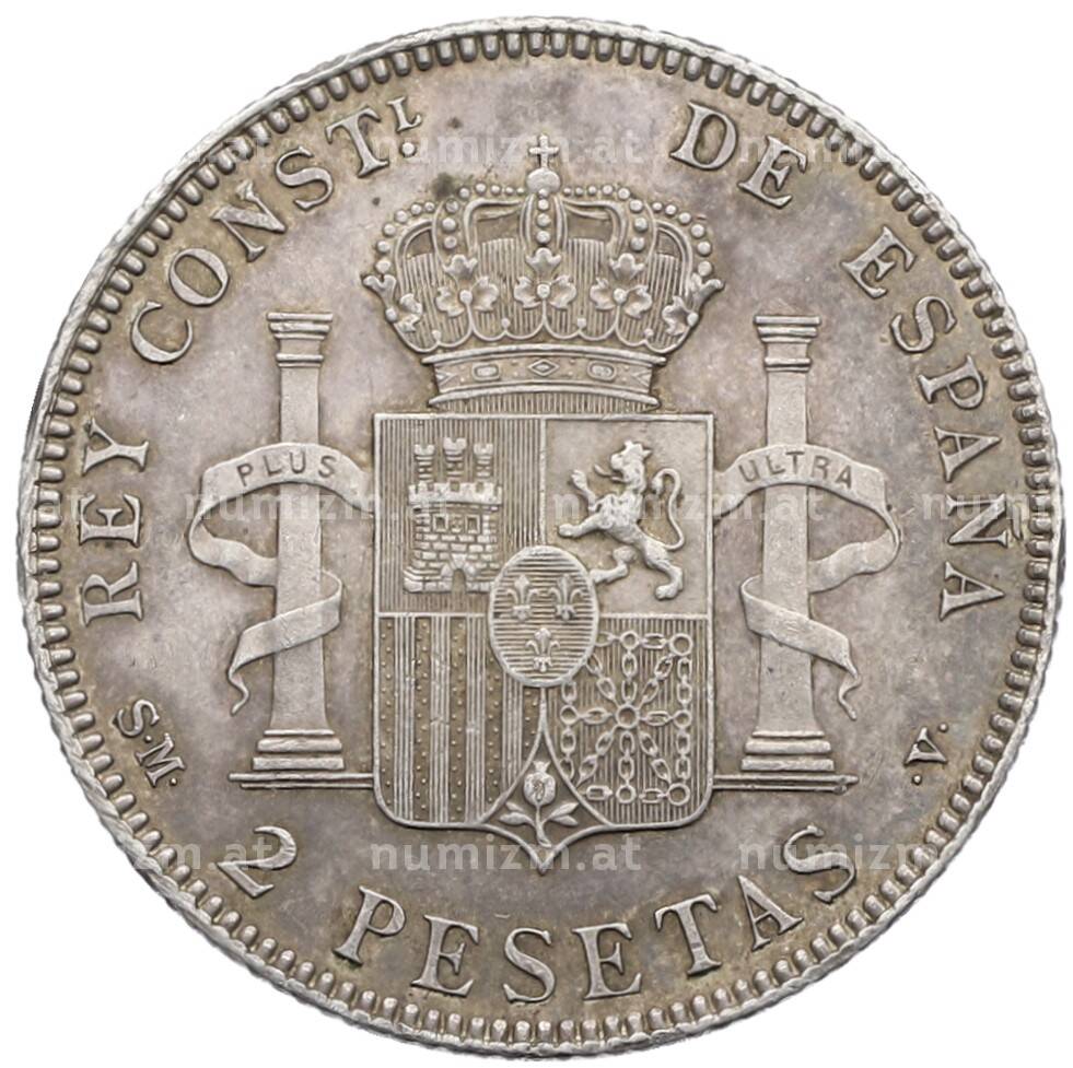 Монета 2 песеты 1905 года Испания (Артикул: K4-0749): подробные характеристики, качественные фотографии в высоком разрешении, низкая цена.