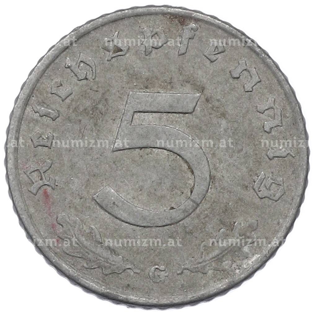 Купить 5 рейхспфеннигов 1941 года G Германия по привлекательной цене можно в нашем интернет-магазине — Вам достаточно оформить заказ на сайте. Все монеты, представленные в каталоге, находятся в наличии на нашем складе.