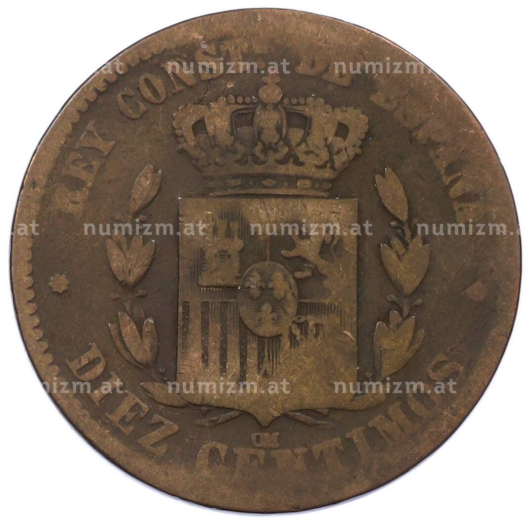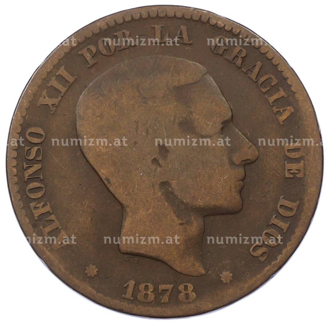 Купить 10 сентимо 1878 года Испания по привлекательной цене можно в нашем интернет-магазине — Вам достаточно оформить заказ на сайте. Все монеты, представленные в каталоге, находятся в наличии на нашем складе.