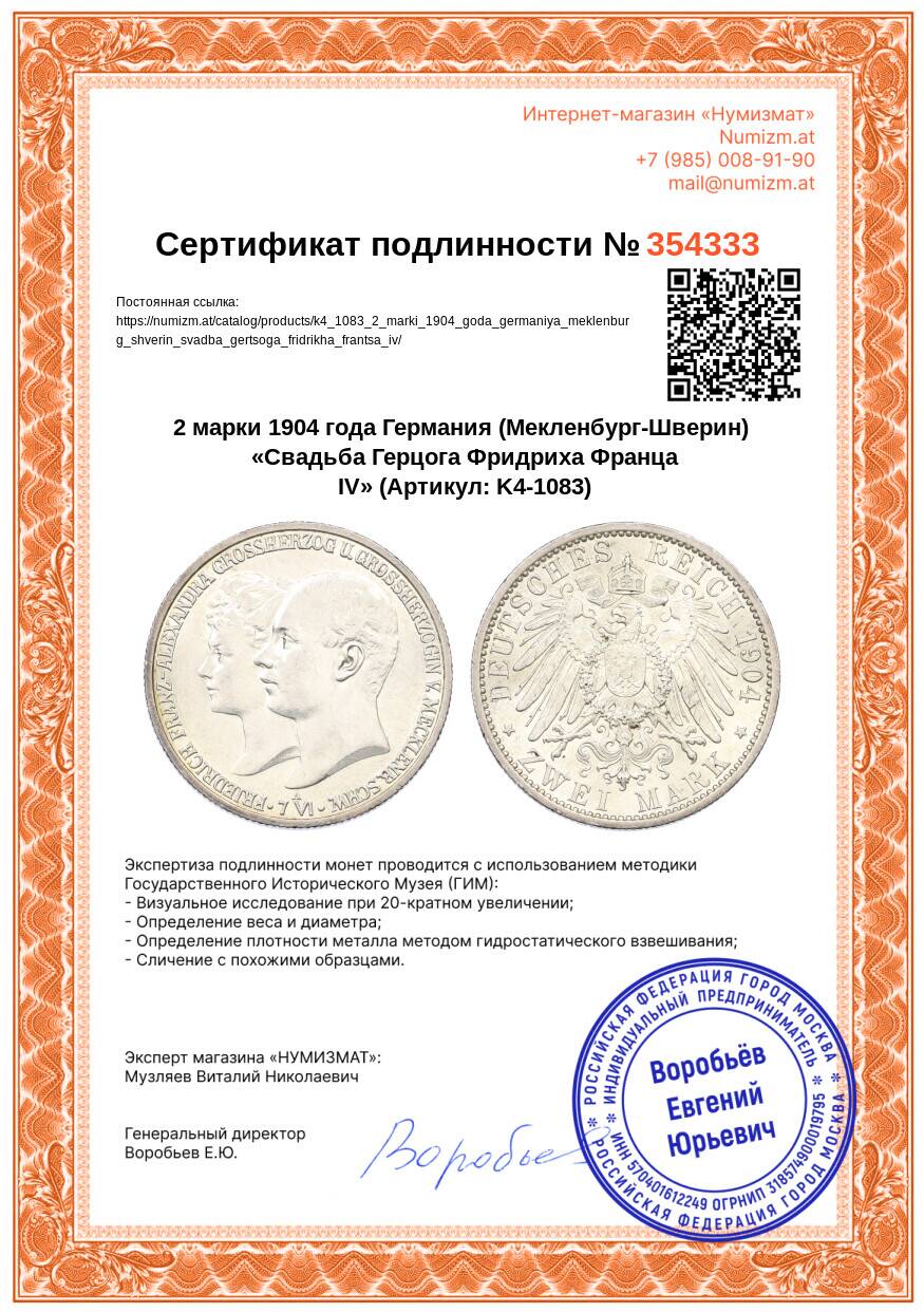 20.01.2025Интернет магазин «Нумизмат» предлагает приобрести 2 марки 1904 года Германия (Мекленбург-Шверин) «Свадьба Герцога Фридриха Франца IV».