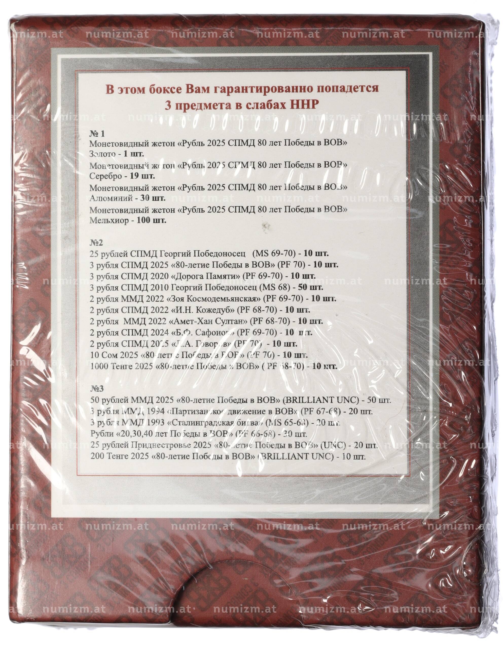 20.01.2025Интернет магазин «Нумизмат» предлагает приобрести Бокс с тремя случайными предметами в слабах ННР серии «3CoinBox».