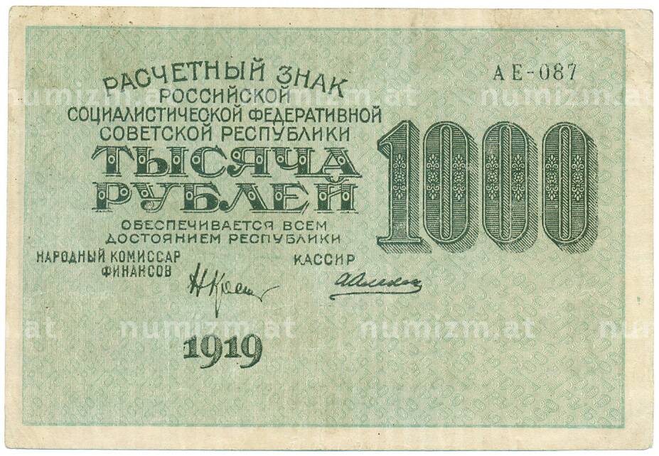 20.01.2025Интернет магазин «Нумизмат» предлагает приобрести 1000 рублей 1919 года.