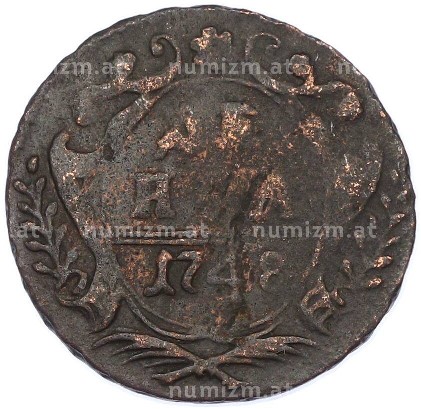 Купить Денга 1748 года по привлекательной цене можно в нашем интернет-магазине — Вам достаточно оформить заказ на сайте. Все монеты, представленные в каталоге, находятся в наличии на нашем складе.