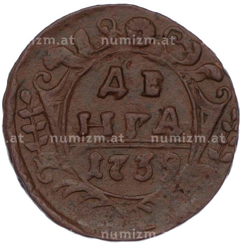 Купить Денга 1739 года по привлекательной цене можно в нашем интернет-магазине — Вам достаточно оформить заказ на сайте. Все монеты, представленные в каталоге, находятся в наличии на нашем складе.