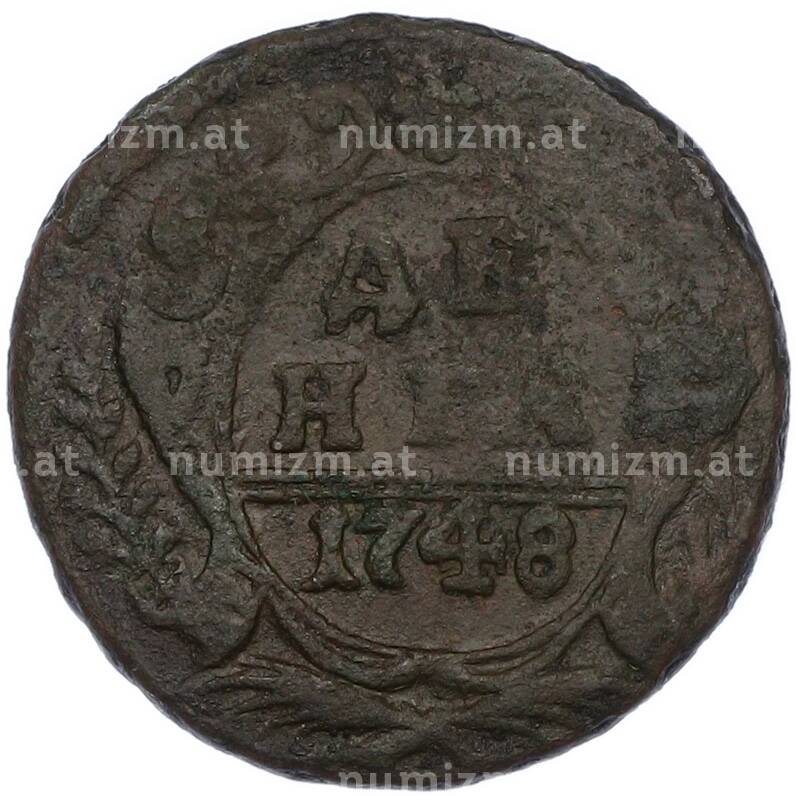 Купить Денга 1748 года по привлекательной цене можно в нашем интернет-магазине — Вам достаточно оформить заказ на сайте. Все монеты, представленные в каталоге, находятся в наличии на нашем складе.