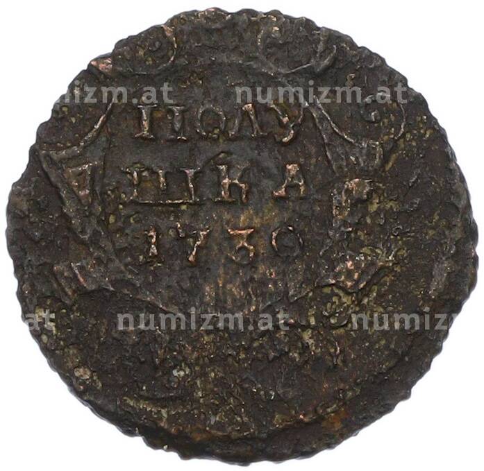 Купить Полушка 1730 года по привлекательной цене можно в нашем интернет-магазине — Вам достаточно оформить заказ на сайте. Все монеты, представленные в каталоге, находятся в наличии на нашем складе.