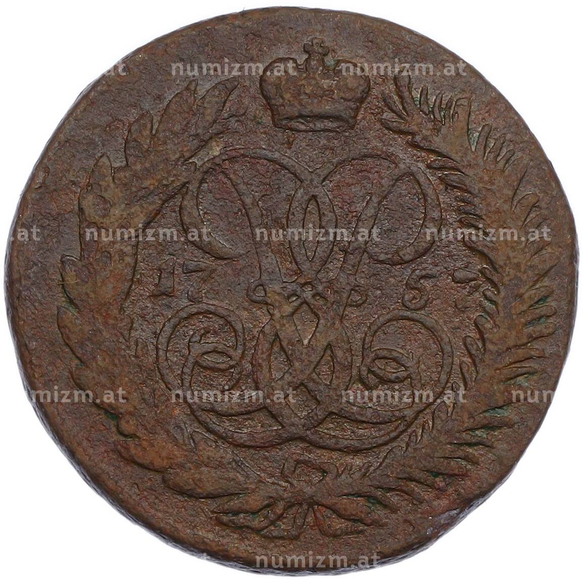 20.01.2025Интернет магазин «Нумизмат» предлагает приобрести 2 копейки 1757 года.