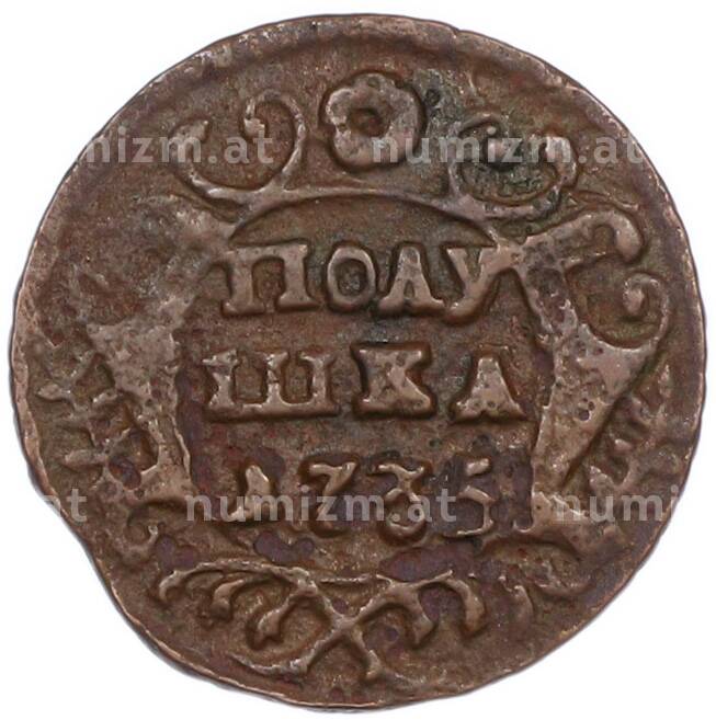 Купить Полушка 1735 года по привлекательной цене можно в нашем интернет-магазине — Вам достаточно оформить заказ на сайте. Все монеты, представленные в каталоге, находятся в наличии на нашем складе.