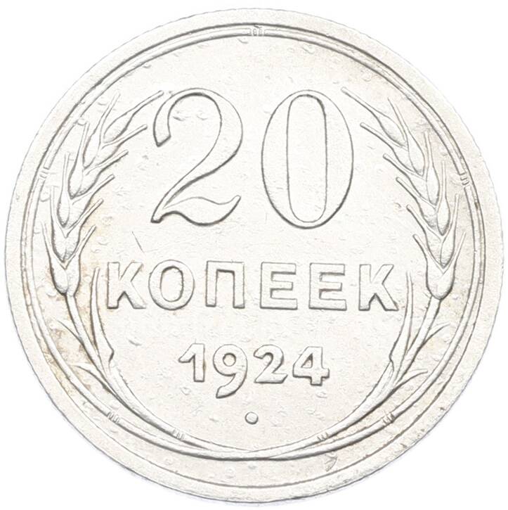 Монета 20 копеек 1924 года (Артикул: K7-1124): подробные характеристики, качественные фотографии в высоком разрешении, низкая цена.