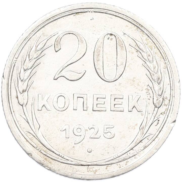 Монета 20 копеек 1925 года (Артикул: K7-1130): подробные характеристики, качественные фотографии в высоком разрешении, низкая цена.