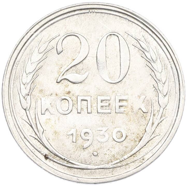 Монета 20 копеек 1930 года (Артикул: K7-1140): подробные характеристики, качественные фотографии в высоком разрешении, низкая цена.