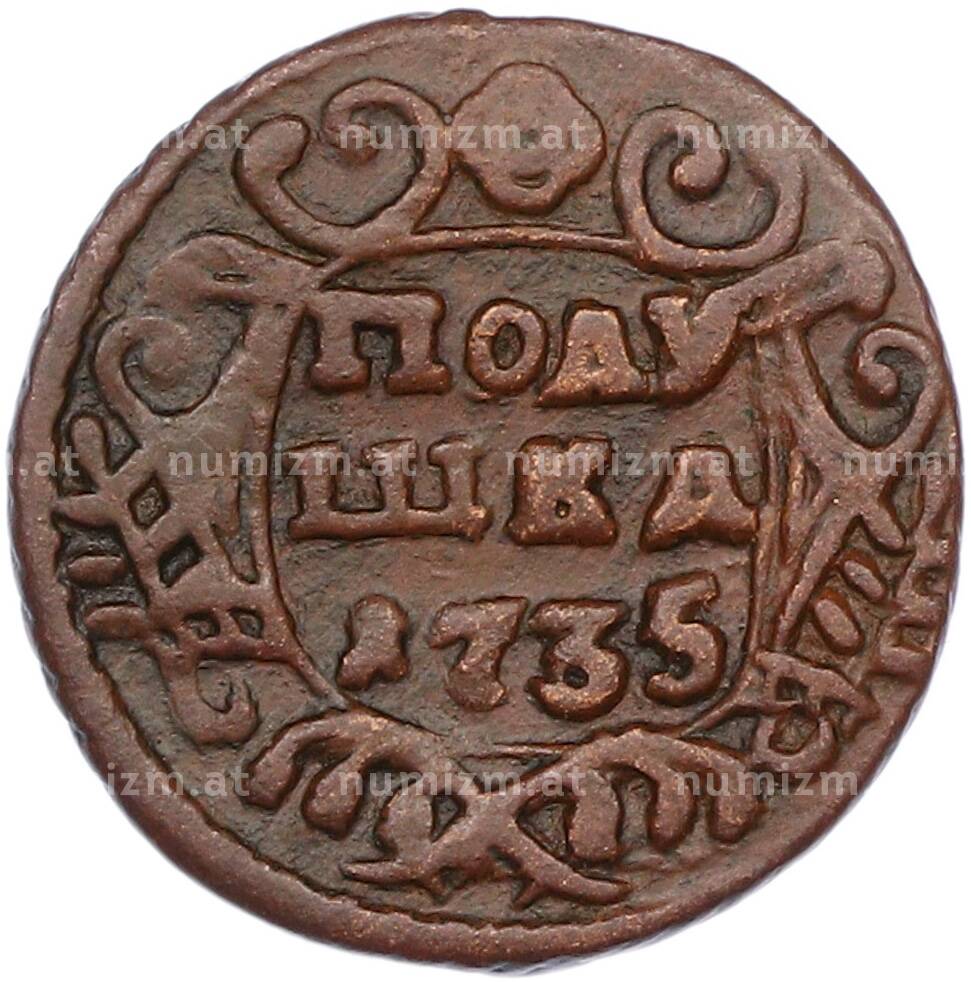 Купить Полушка 1735 года по привлекательной цене можно в нашем интернет-магазине — Вам достаточно оформить заказ на сайте. Все монеты, представленные в каталоге, находятся в наличии на нашем складе.