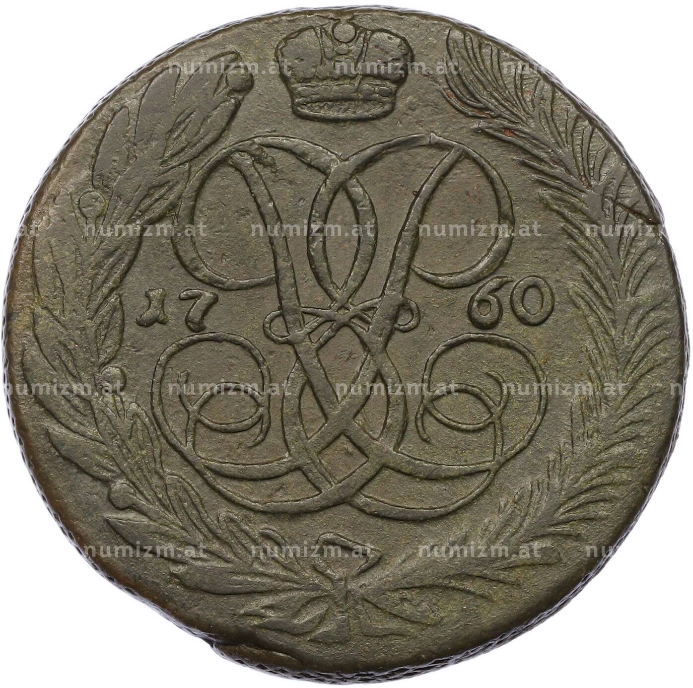 Купить 5 копеек 1760 года по привлекательной цене можно в нашем интернет-магазине — Вам достаточно оформить заказ на сайте. Все монеты, представленные в каталоге, находятся в наличии на нашем складе.