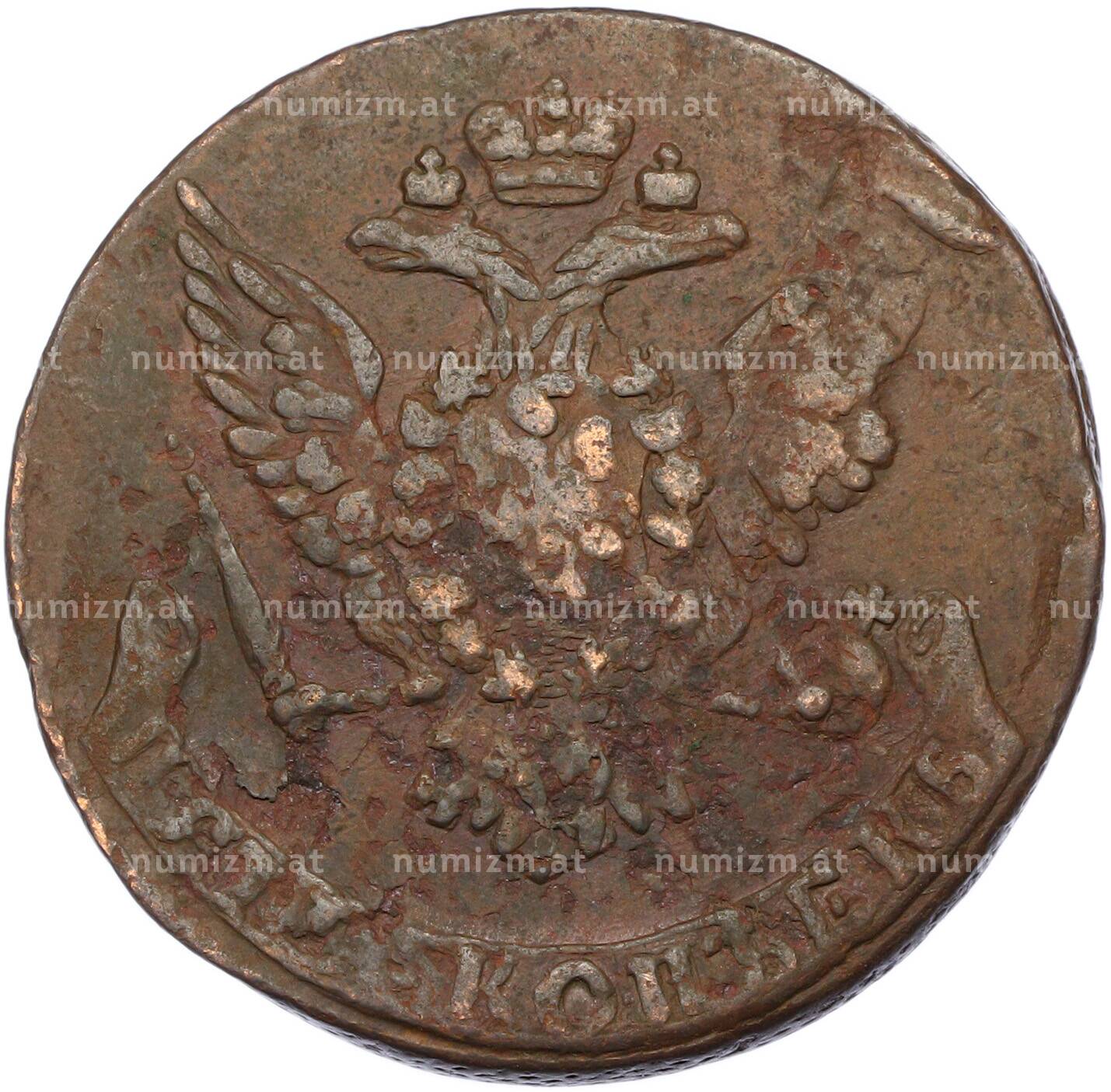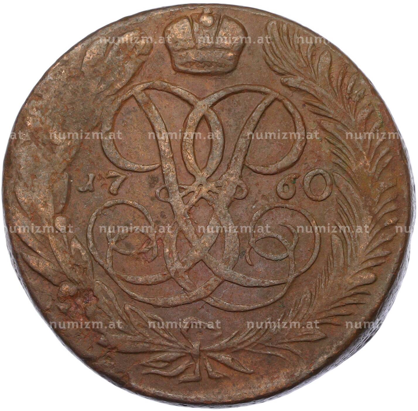 20.01.2025Интернет магазин «Нумизмат» предлагает приобрести 5 копеек 1760 года.