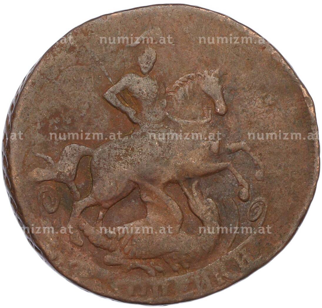 20.01.2025Интернет магазин «Нумизмат» предлагает приобрести 2 копейки 1757 года.