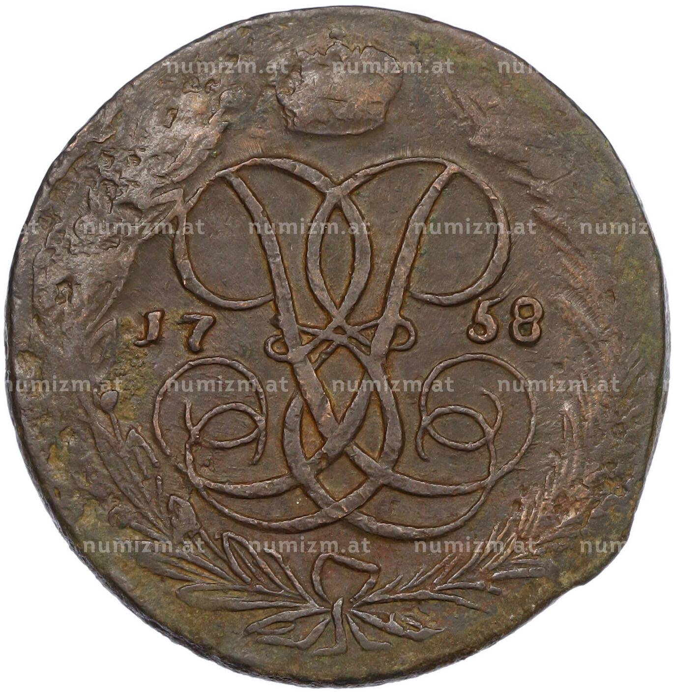 Купить 5 копеек 1758 года по привлекательной цене можно в нашем интернет-магазине — Вам достаточно оформить заказ на сайте. Все монеты, представленные в каталоге, находятся в наличии на нашем складе.