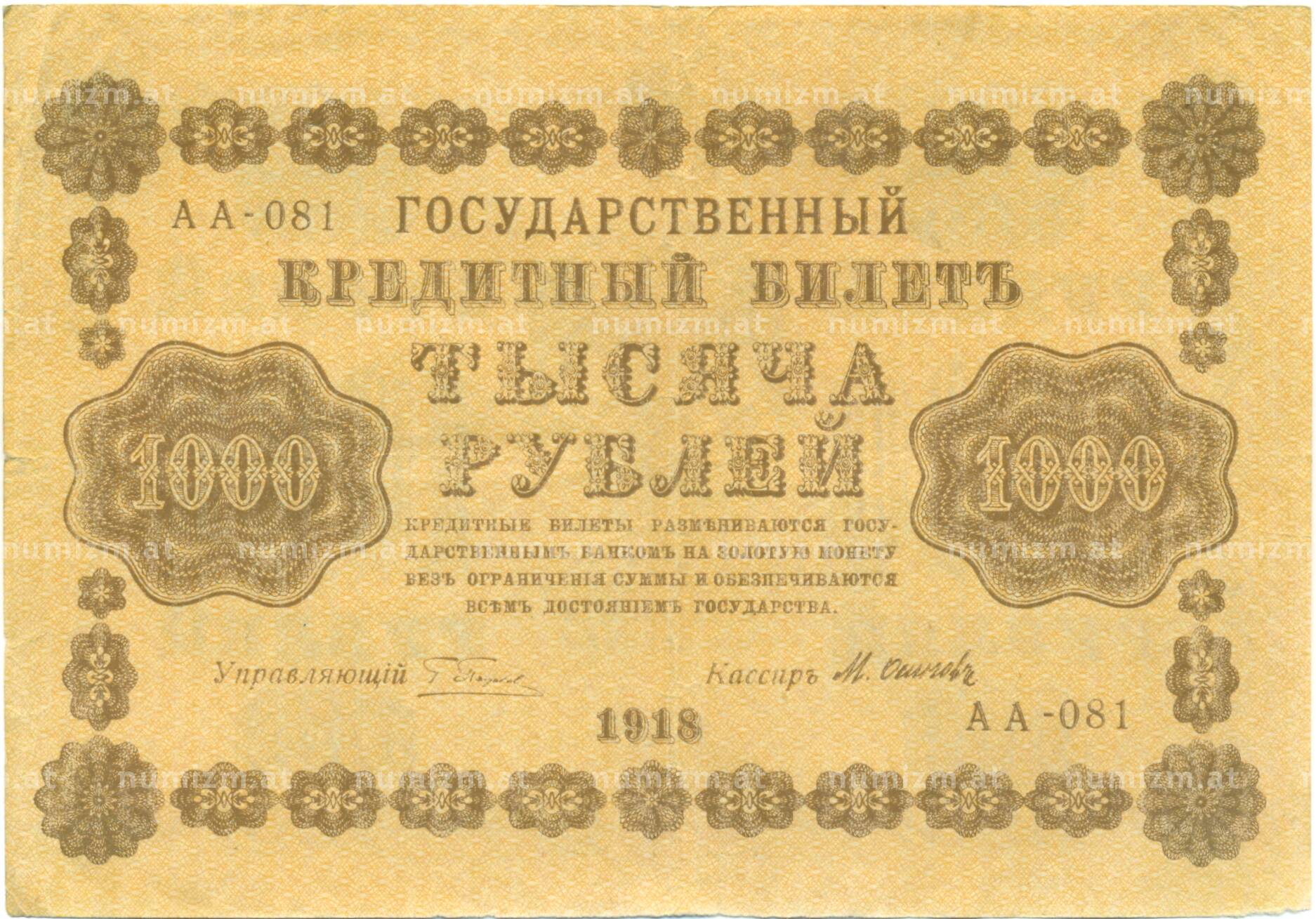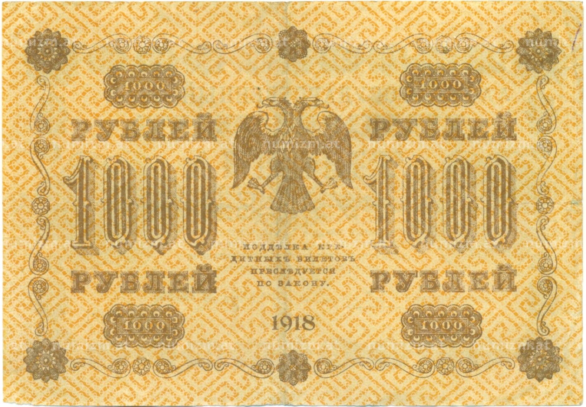 Банкнота 1000 рублей 1918 года (Артикул: K7-1786): подробные характеристики, качественные фотографии в высоком разрешении, низкая цена.