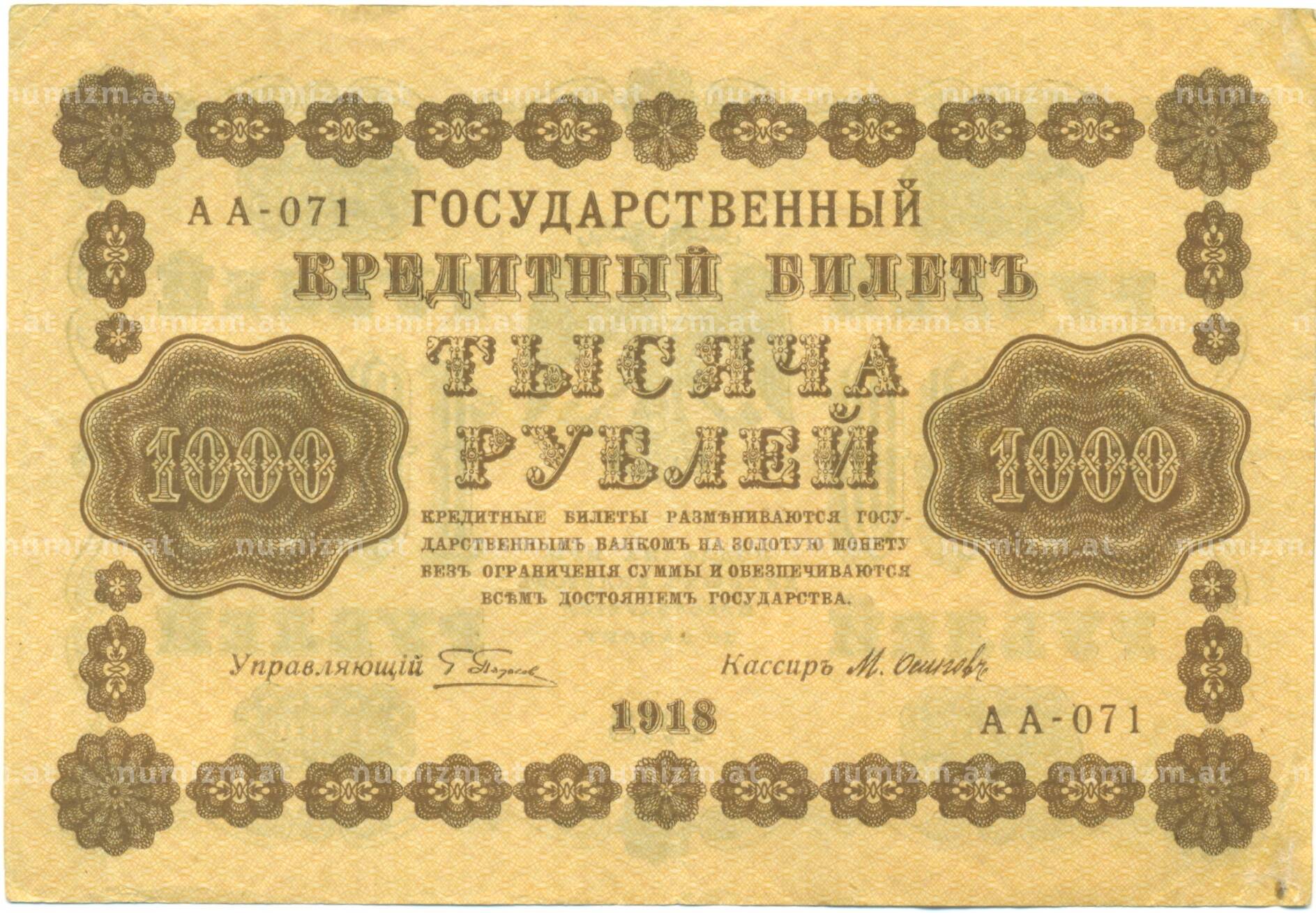 Банкнота 1000 рублей 1918 года (Артикул: K7-1787): подробные характеристики, качественные фотографии в высоком разрешении, низкая цена.