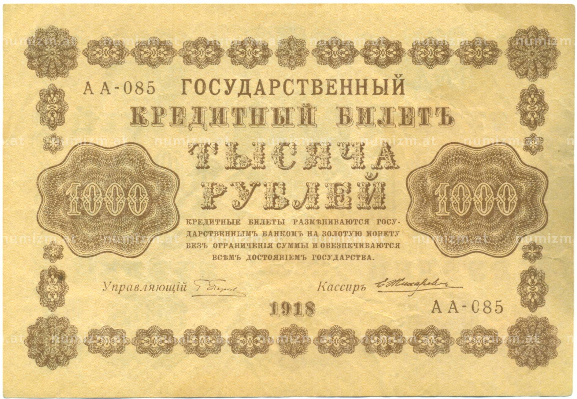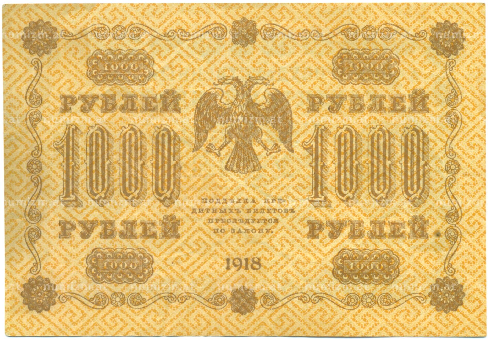 20.01.2025Интернет магазин «Нумизмат» предлагает приобрести 1000 рублей 1918 года.