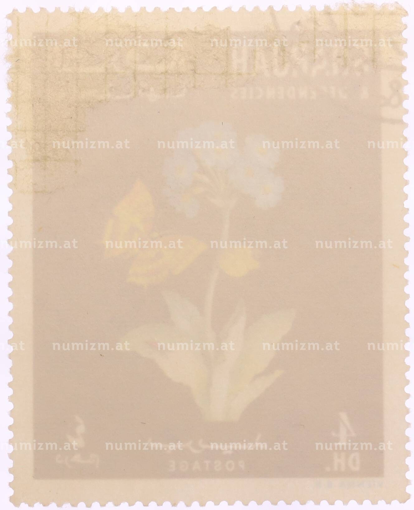 Купить Почтовая марка 4 дирхама 1967 года Шарджа «Цветы и бабочки — Первоцвет (Primula) и Шашечница бритомарта (Melitaea britomartis)» по привлекательной цене можно в нашем интернет-магазине — Вам достаточно оформить заказ на сайте. Все монеты, представленные в каталоге, находятся в наличии на нашем складе.
