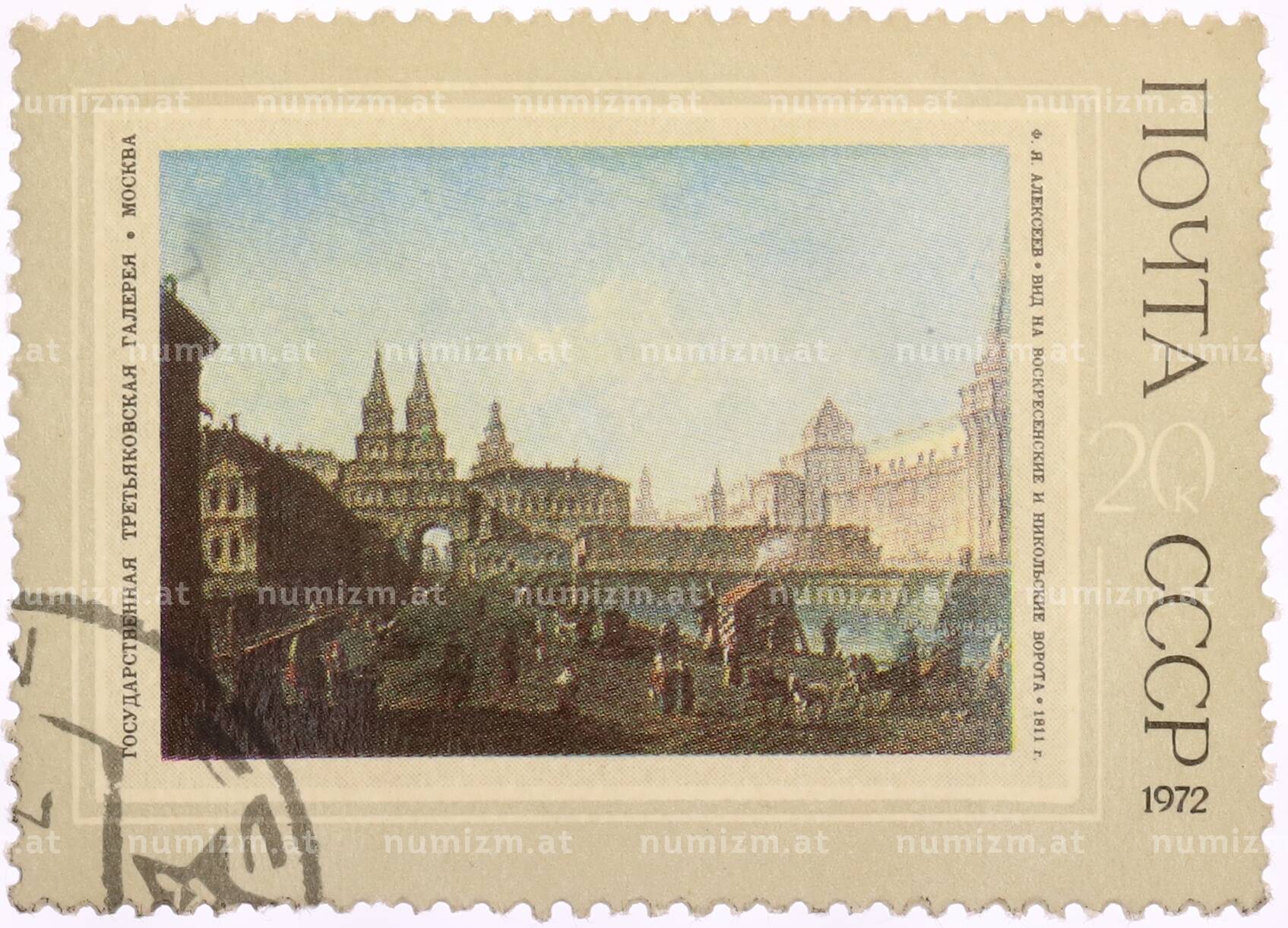 Купить Почтовая марка 20 копеек 1972 года «Вид на Воскресенские и Никольские ворота — Федор Яковлевич Алексеев» по привлекательной цене можно в нашем интернет-магазине — Вам достаточно оформить заказ на сайте. Все монеты, представленные в каталоге, находятся в наличии на нашем складе.