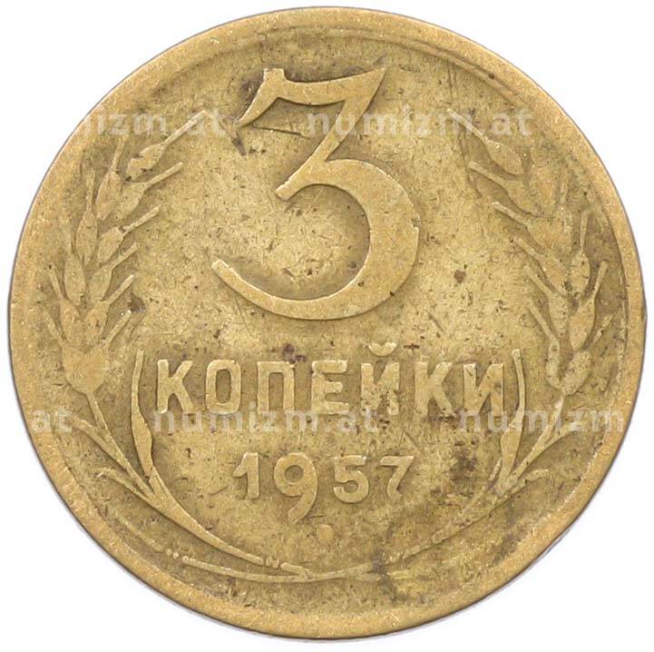 Монета 3 копейки 1957 года (Артикул: K8-1627): подробные характеристики, качественные фотографии в высоком разрешении, низкая цена.