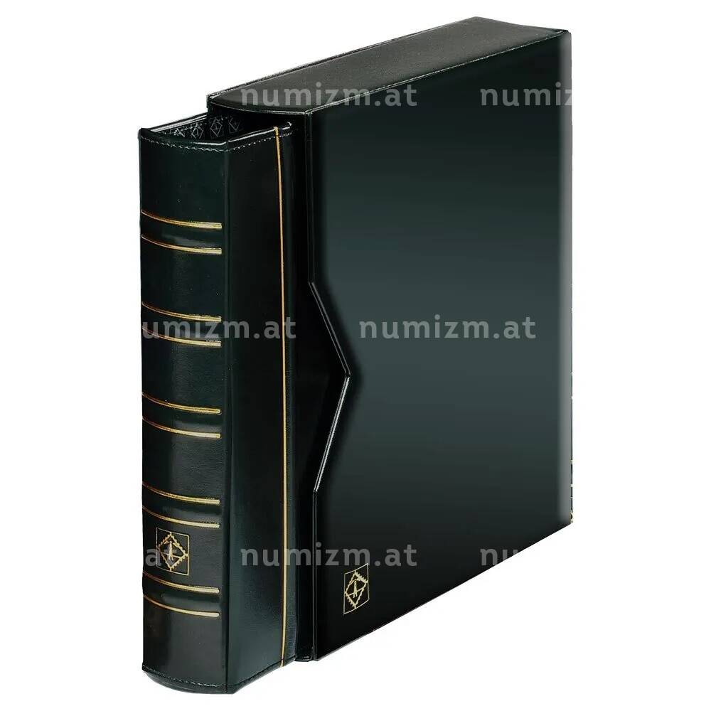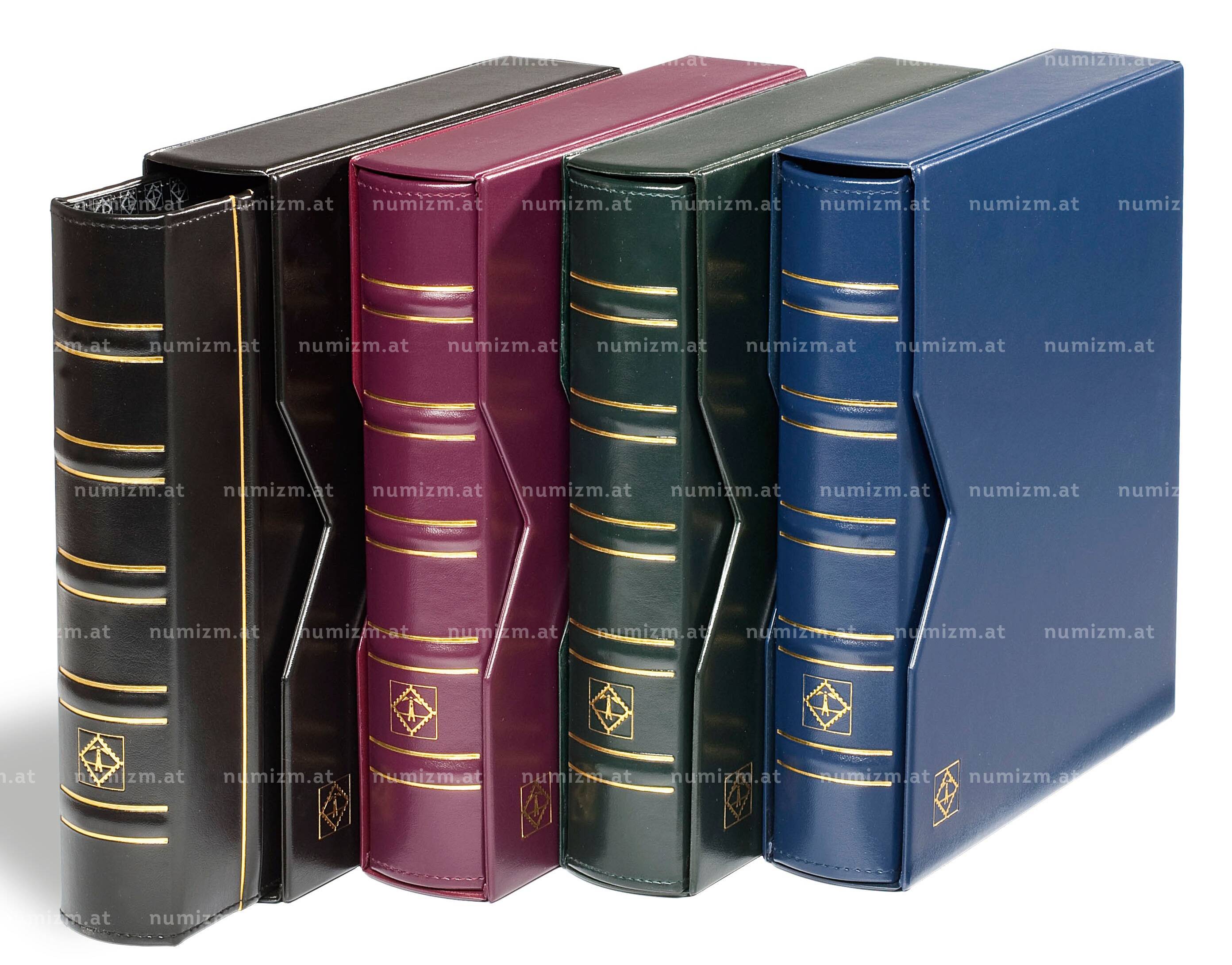 Альбом для монет формата «Оптима» классического дизайна без листов. Кожзаменитель. С футляром. Прочный 4-х D-образный кольцевой механизм.Вмещает не менее 15 листов стандартного формата «Оптима» (202x 252 мм) с листами-разделителями при хранении монет малых и средних размеров (на 54-20 ячеек). При размещении бумажного материала (марок, банкнот) – не менее 50 листов.