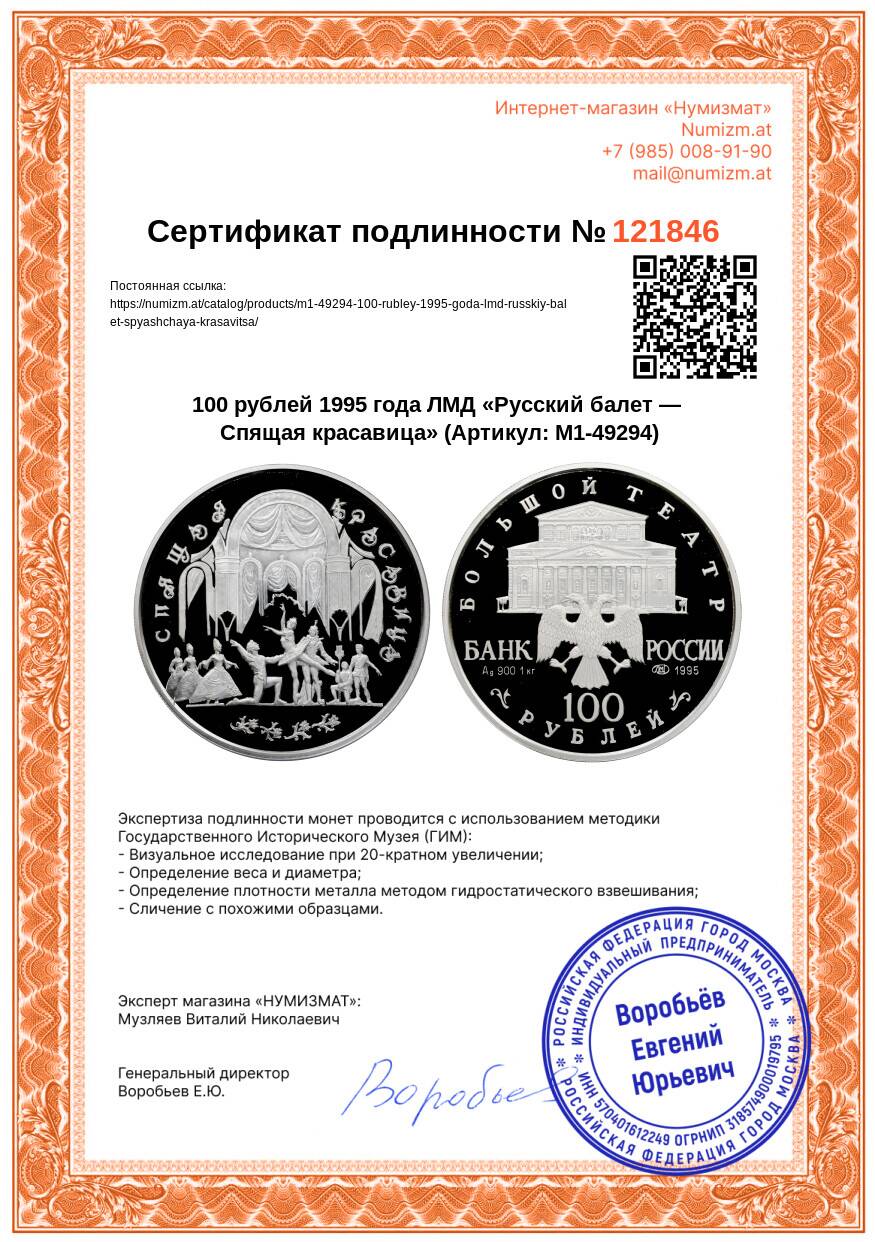 20.01.2025Интернет магазин «Нумизмат» предлагает приобрести 100 рублей 1995 года ЛМД «Русский балет — Спящая красавица».
