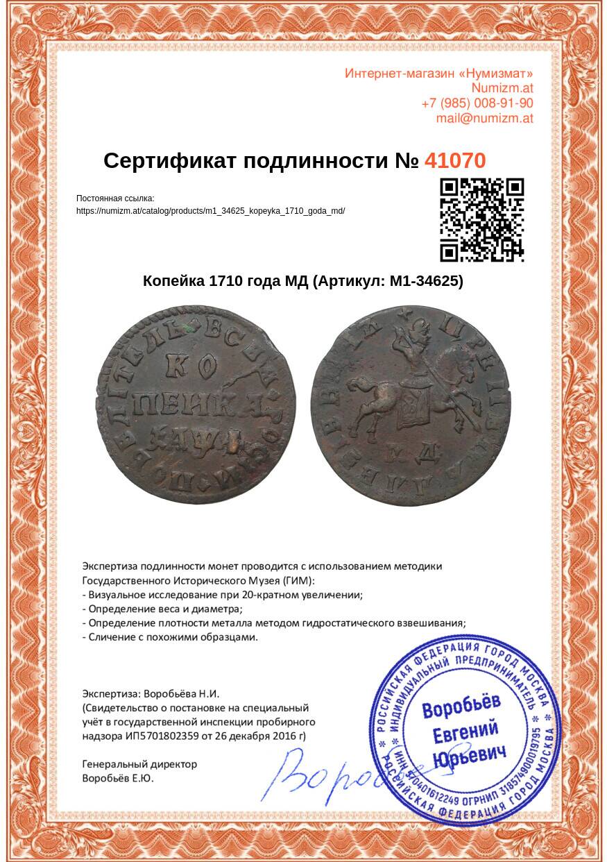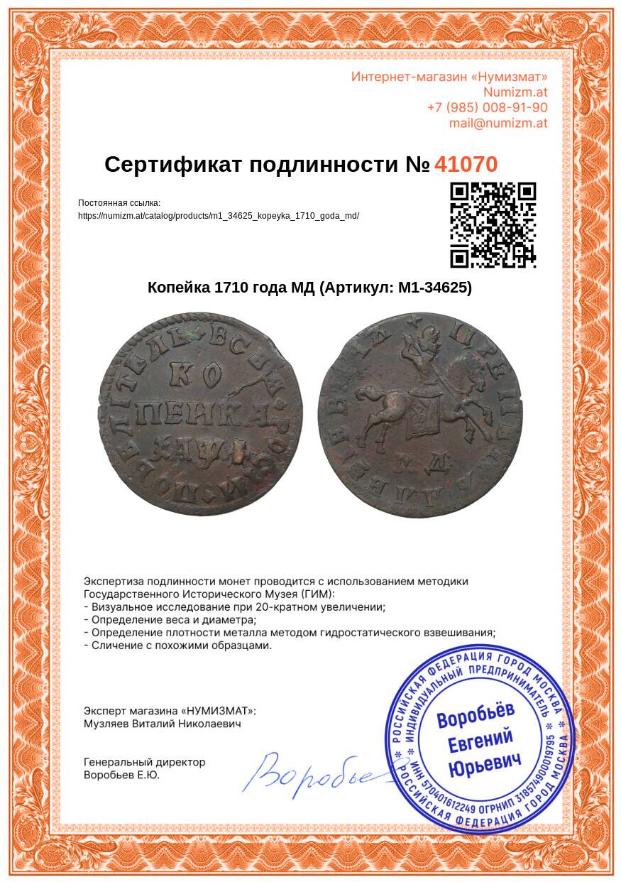 Купить Копейка 1710 года МД по привлекательной цене можно в нашем интернет-магазине — Вам достаточно оформить заказ на сайте. Все монеты, представленные в каталоге, находятся в наличии на нашем складе.