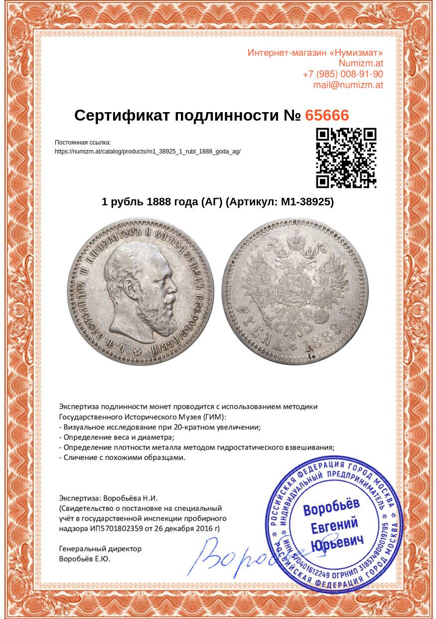 Купить 1 рубль 1888 года (АГ) по привлекательной цене можно в нашем интернет-магазине — Вам достаточно оформить заказ на сайте. Все монеты, представленные в каталоге, находятся в наличии на нашем складе.