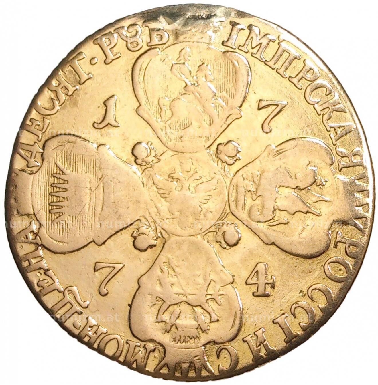 Купить 10 рублей 1774 года СПБ по привлекательной цене можно в нашем интернет-магазине — Вам достаточно оформить заказ на сайте. Все монеты, представленные в каталоге, находятся в наличии на нашем складе.