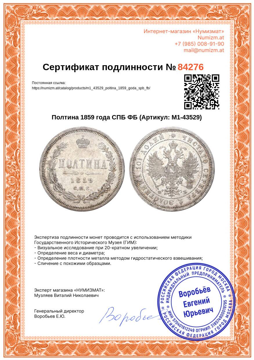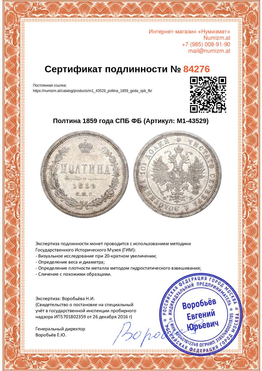 Купить Полтина 1859 года СПБ ФБ по привлекательной цене можно в нашем интернет-магазине — Вам достаточно оформить заказ на сайте. Все монеты, представленные в каталоге, находятся в наличии на нашем складе.