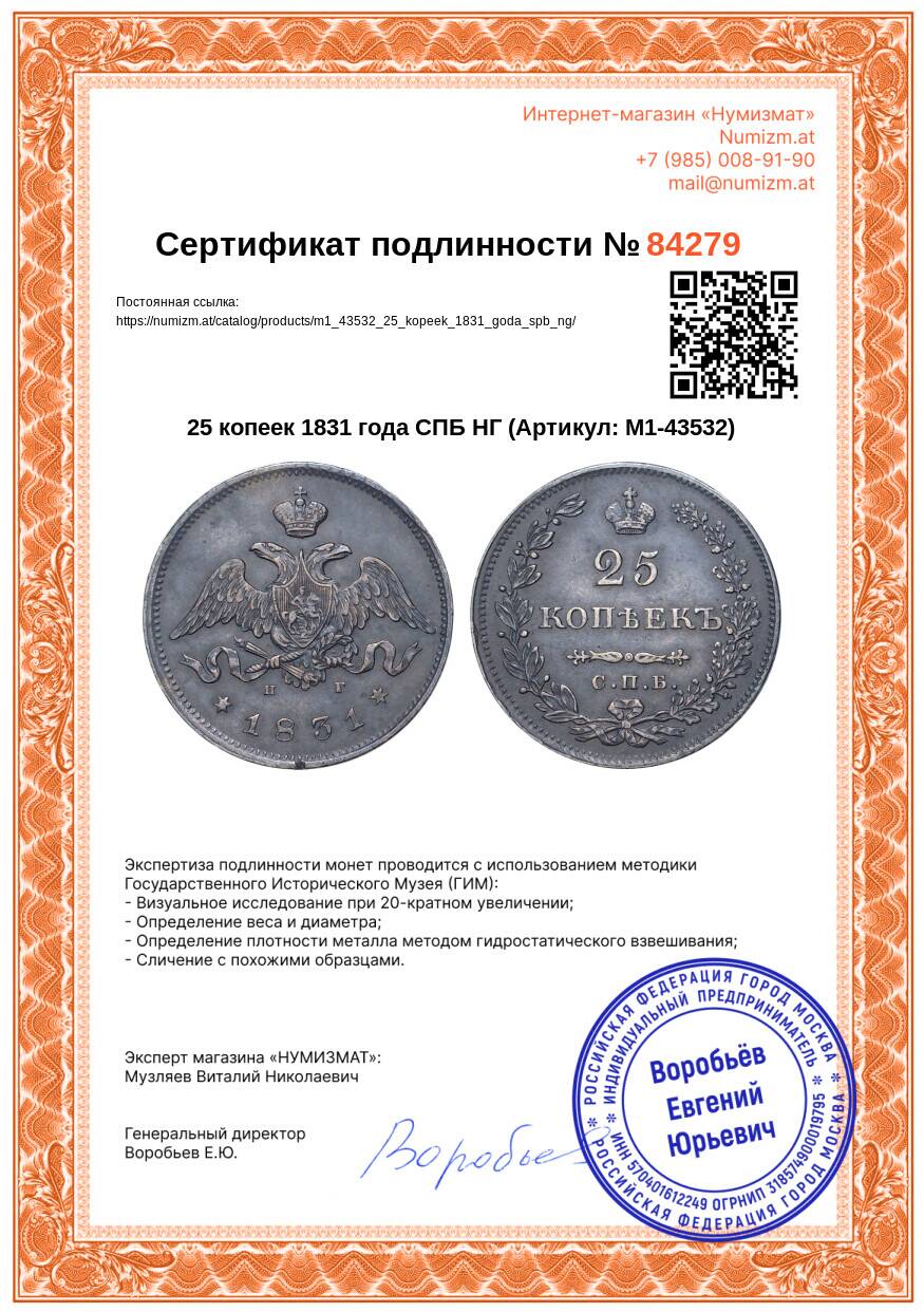 Купить 25 копеек 1831 года СПБ НГ по привлекательной цене можно в нашем интернет-магазине — Вам достаточно оформить заказ на сайте. Все монеты, представленные в каталоге, находятся в наличии на нашем складе.