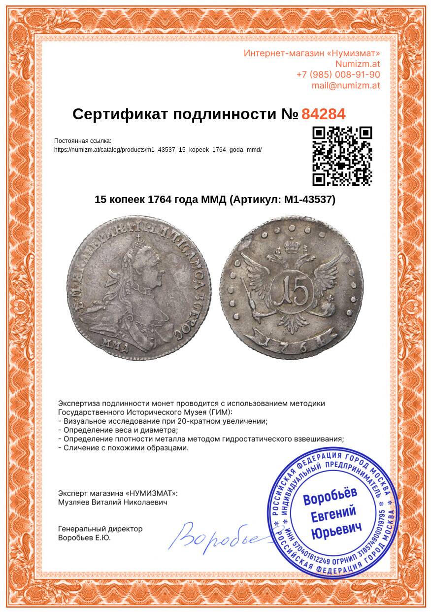 Купить 15 копеек 1764 года ММД по привлекательной цене можно в нашем интернет-магазине — Вам достаточно оформить заказ на сайте. Все монеты, представленные в каталоге, находятся в наличии на нашем складе.