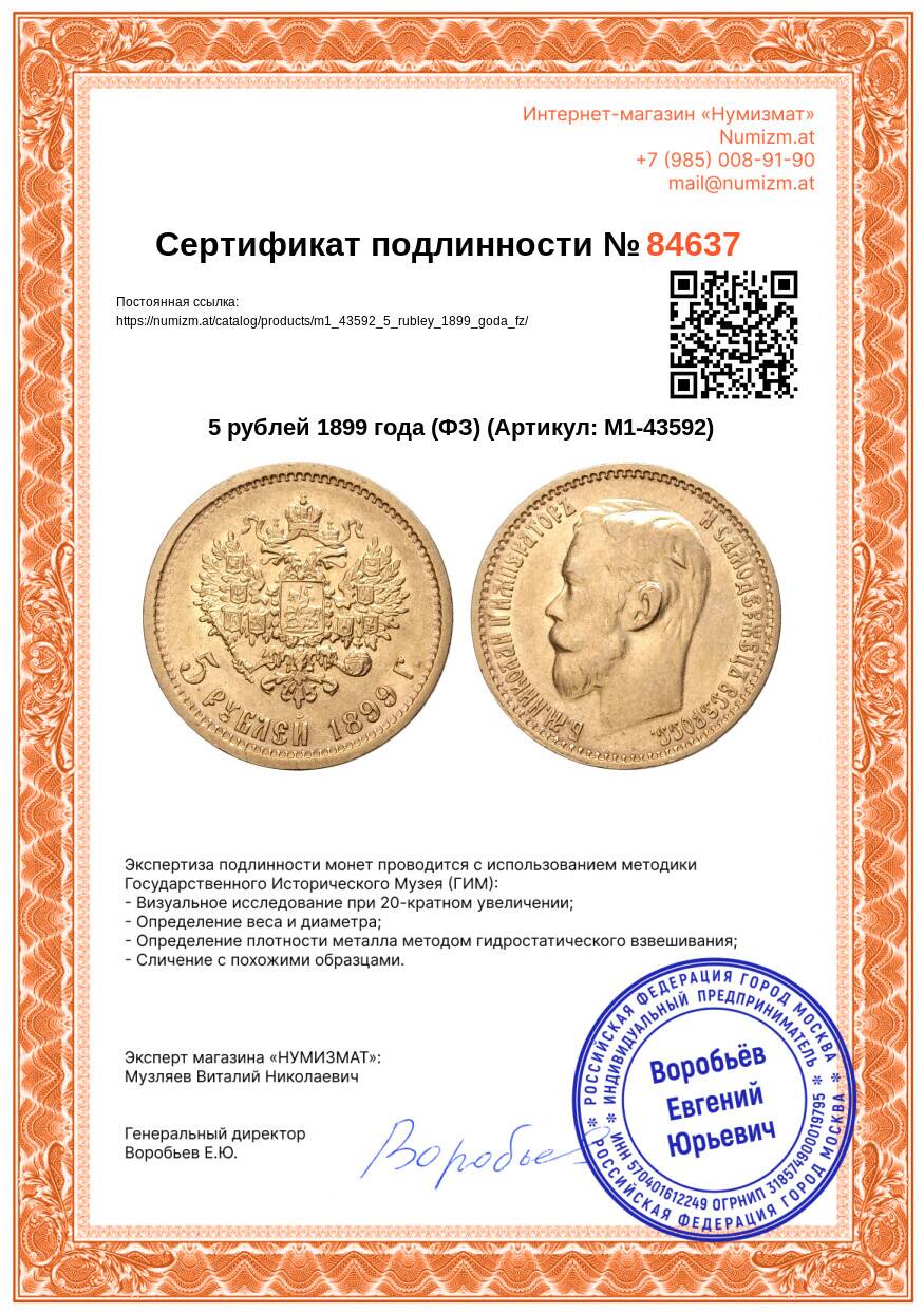 Купить 5 рублей 1899 года (ФЗ) по привлекательной цене можно в нашем интернет-магазине — Вам достаточно оформить заказ на сайте. Все монеты, представленные в каталоге, находятся в наличии на нашем складе.