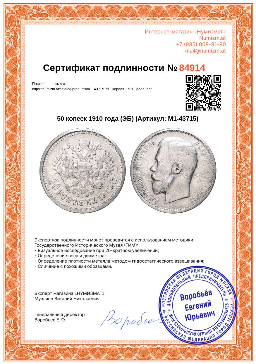 Купить 50 копеек 1910 года (ЭБ) по привлекательной цене можно в нашем интернет-магазине — Вам достаточно оформить заказ на сайте. Все монеты, представленные в каталоге, находятся в наличии на нашем складе.
