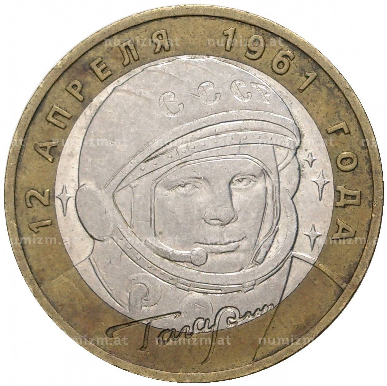 Интернет магазин «Нумизмат» предлагает приобрести 10 рублей 2001 года ММД «Гагарин».