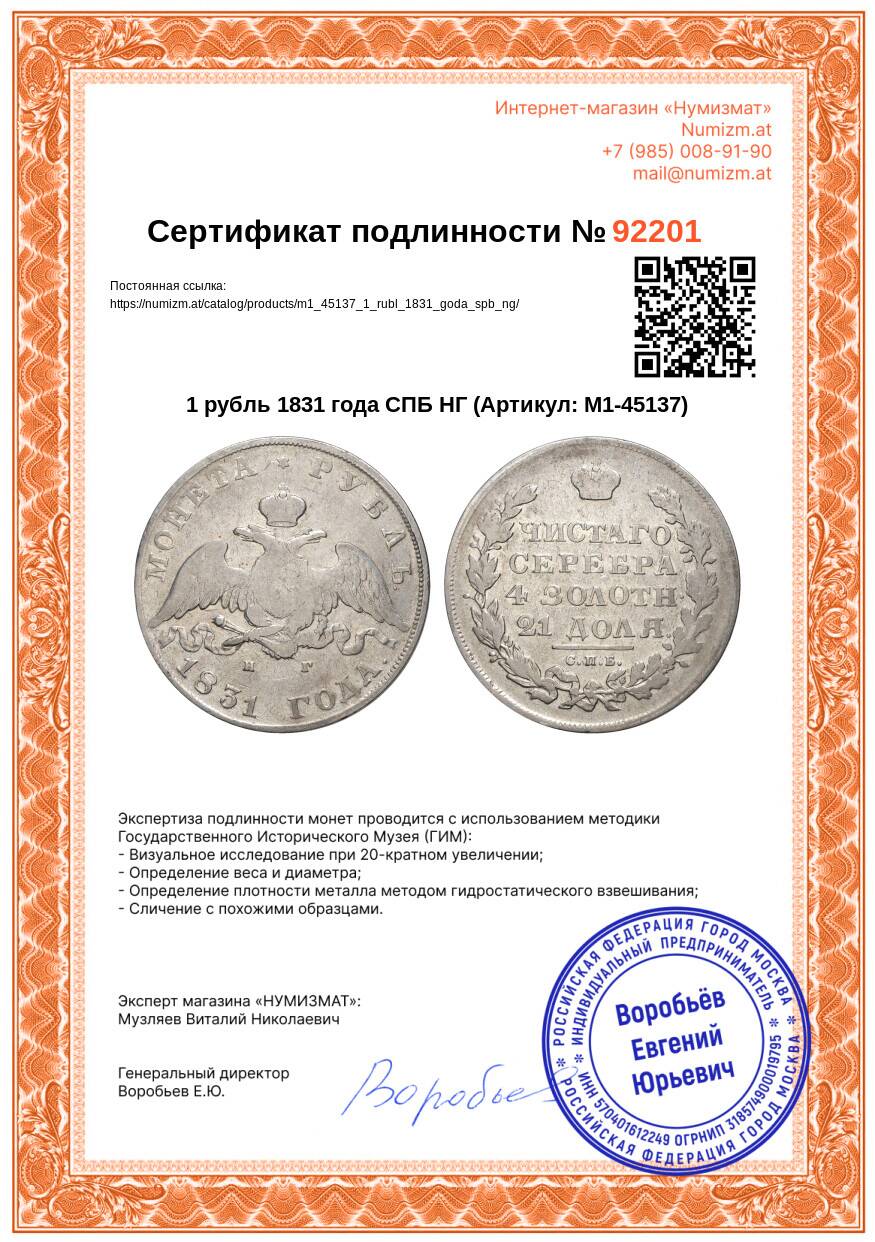 Купить 1 рубль 1831 года СПБ НГ по привлекательной цене можно в нашем интернет-магазине — Вам достаточно оформить заказ на сайте. Все монеты, представленные в каталоге, находятся в наличии на нашем складе.