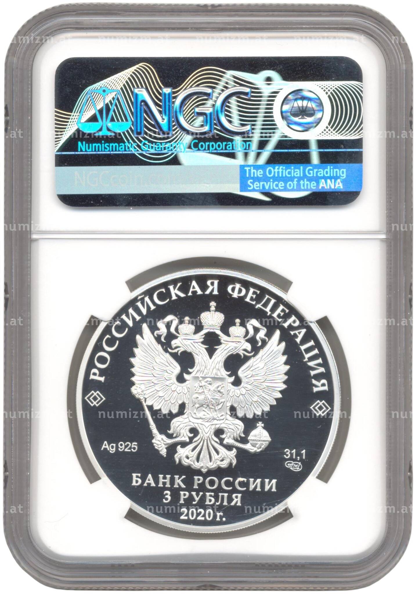 20.01.2025Интернет магазин «Нумизмат» предлагает приобрести 3 рубля 2020 года СПМД «Дорога Памяти» В слабе NGC (PF70 ULTRA CAMEO).