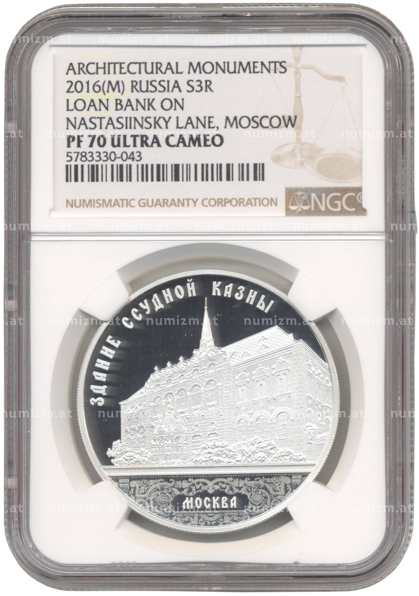 Купить 3 рубля 2016 года ММД «Памятники архитектуры России — Здание Ссудной казны в Москве» В слабе NGC (PF70 ULTRA CAMEO) по привлекательной цене можно в нашем интернет-магазине — Вам достаточно оформить заказ на сайте. Все монеты, представленные в каталоге, находятся в наличии на нашем складе.