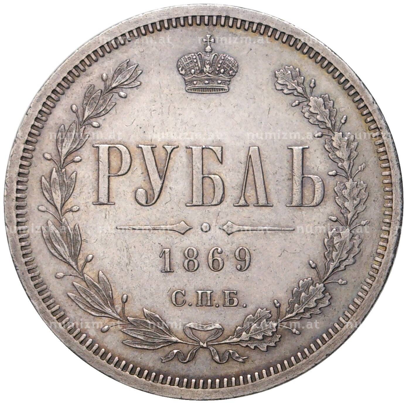 20.01.2025Интернет магазин «Нумизмат» предлагает приобрести 1 рубль 1869 года СПБ НI.